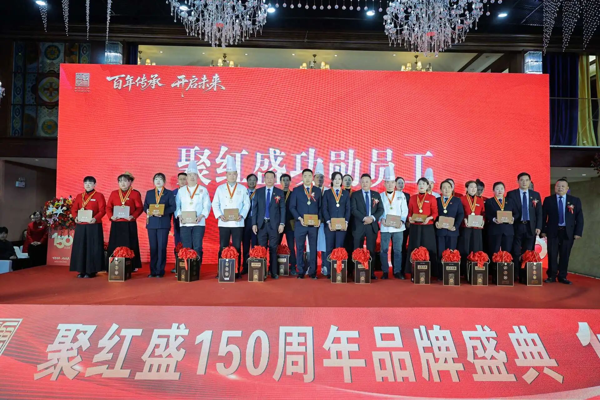 活动中,还设置了餐饮创新发展高峰论坛环节,多位餐饮领域资深专家、行业领军者共探行业新趋势,围绕实体餐饮融合发展等热门话题展开深度对话。150年的辉煌成就,离不开每一位聚红盛员工的默默坚守与无私奉献。活动现场特别设置了功勋员工表彰环节,对陪伴企业一路走来、深耕岗位多年的功勋员工进行了隆重表彰。