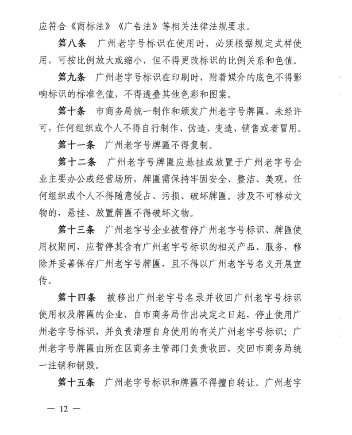 广州市商务局广州市文化广电旅游局广州市 市场监督管理局(知识产权局)关于印发 广州老字号认定管理办法的通知